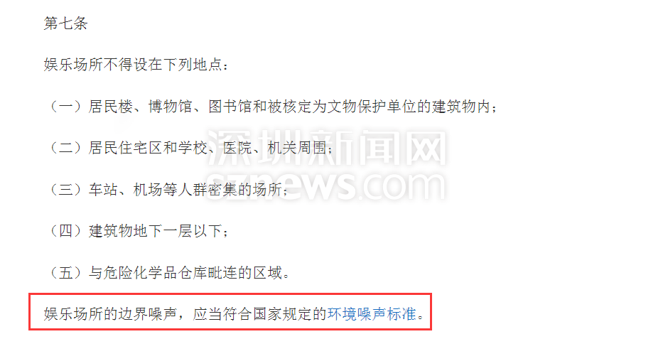 此外,該管理?xiàng)l例還對(duì)娛樂(lè)場(chǎng)所的邊界噪聲做出了明確規(guī)定,要求其邊界噪聲應(yīng)當(dāng)符合國(guó)家規(guī)定的環(huán)境噪聲標(biāo)準(zhǔn),即睡眠30分貝。