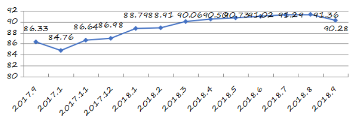 國家統(tǒng)計(jì)局深圳調(diào)查隊(duì)編制9月份深圳市城市交通文明指數(shù)為87.02分,比上月增加0.05分,比上年同期增加2.06分;深圳市城市交通文明進(jìn)步指數(shù)為-0.05 % (見圖1)。