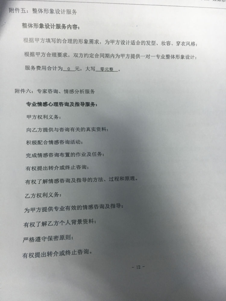 劉小姐提供的合同增值服務(wù)內(nèi)容,包含心理咨詢(xún),個(gè)人宣傳片等服務(wù)。