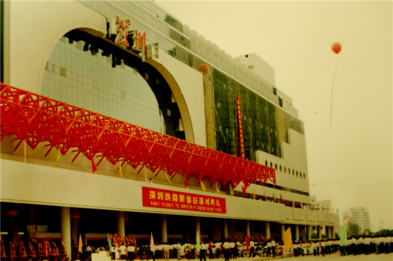 1991年10月12日,深圳新客站落成。時任國務(wù)院副總理田紀云出席典禮并剪彩。圖為典禮盛況