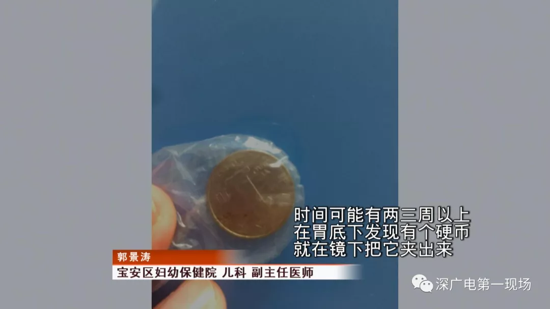 經(jīng)過兩個小時的時間,兒科醫(yī)生郭景濤為患兒取出了藏在胃底的一角錢硬幣。目前,患兒已經(jīng)痊愈出院。