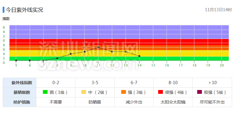 市氣象局發(fā)布今日紫外線實況(數據更新于11月13日14時)