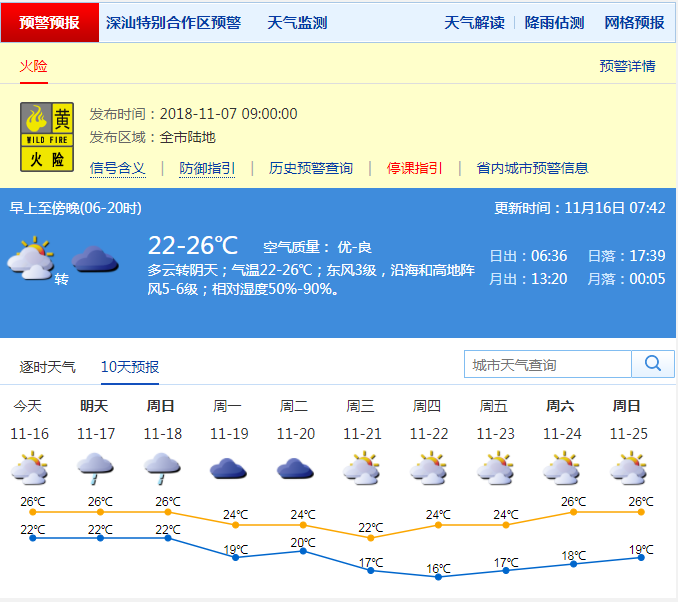 市氣象局預(yù)計,16日陰天間多云,間中有小雨,氣溫在22-26℃;17-18日陰天有小雨;19-20日受弱冷空氣影響,陰天有分散小雨,氣溫略降;展望21-22日,受冷空氣影響氣溫下降,天氣會轉(zhuǎn)涼。
