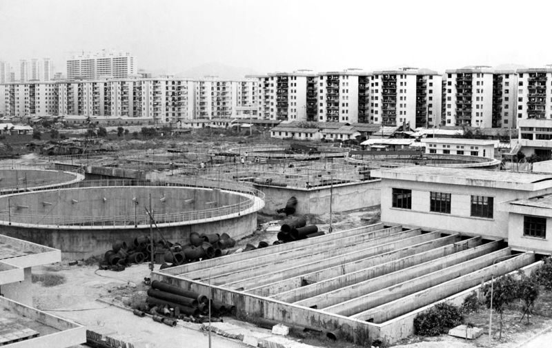 1984年,公司承建的第一個市政重點工程——濱河水質凈化廠(一期)(1986年攝)。馬樹華攝