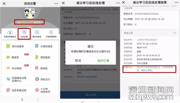 早在2015年,星級用戶平臺就上線了“減分學習”功能,通過減分學習,一個記分周期最多可以使用18分駕駛證記分。通過減分學習獲得了6分,該怎么處理交通違法呢?11月份,深圳交警在星級用戶平臺推出了“使用減分學習獲得的記分在線處理交通違法”業(yè)務(wù)。