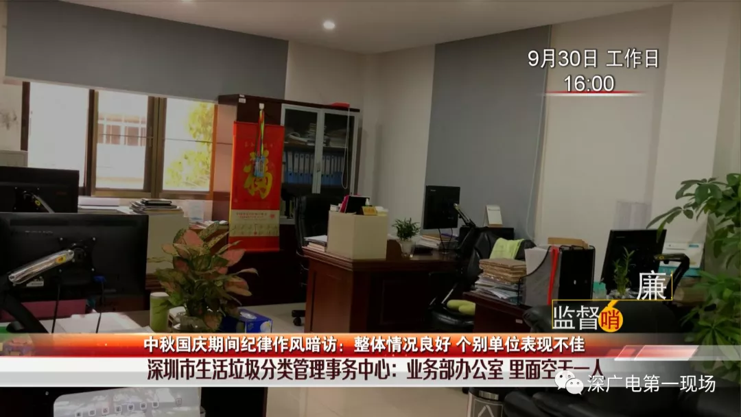 暗訪組了解到,這間辦公室屬于深圳市生活垃圾處理監(jiān)管中心經(jīng)營部,而這間辦公室內(nèi)的兩名工作人員直到規(guī)定的下班時間5點半,也沒有回到辦公室。聯(lián)合暗訪組還發(fā)現(xiàn),216辦公室的隔壁214辦公室也同為經(jīng)營部,里面有四個辦公卡座,但只剩下一名男性工作人員。