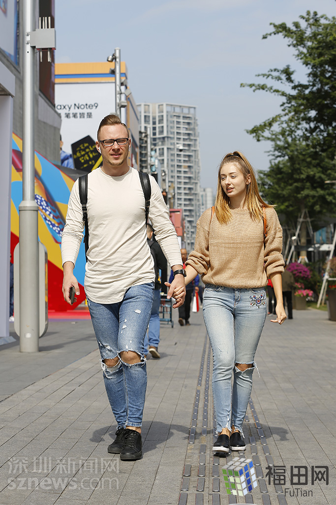身穿破洞牛仔褲的時(shí)尚外國(guó)情侶。