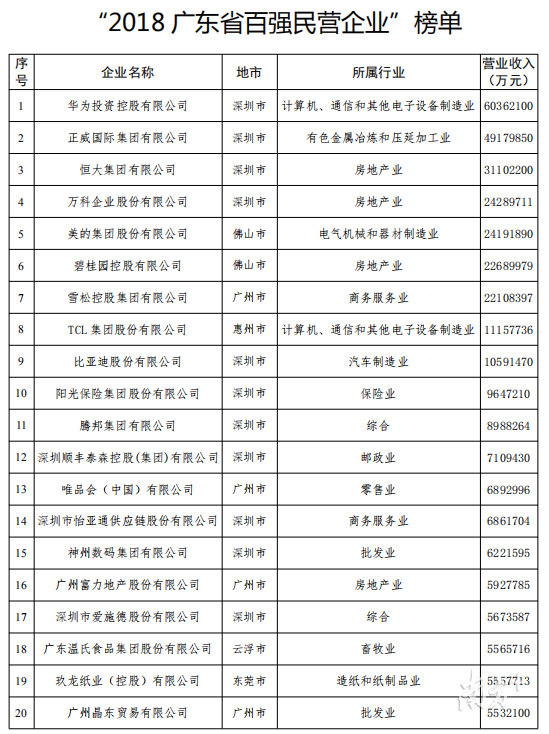 深圳華為、恒大、萬科、順豐等40家企業(yè)上榜