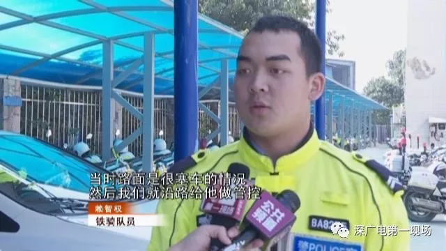 鐵騎到場沿路管控,正在路面巡邏,松崗交警中隊鐵騎隊員賴智權(quán)和他的兩名同事,立即趕到現(xiàn)場。
