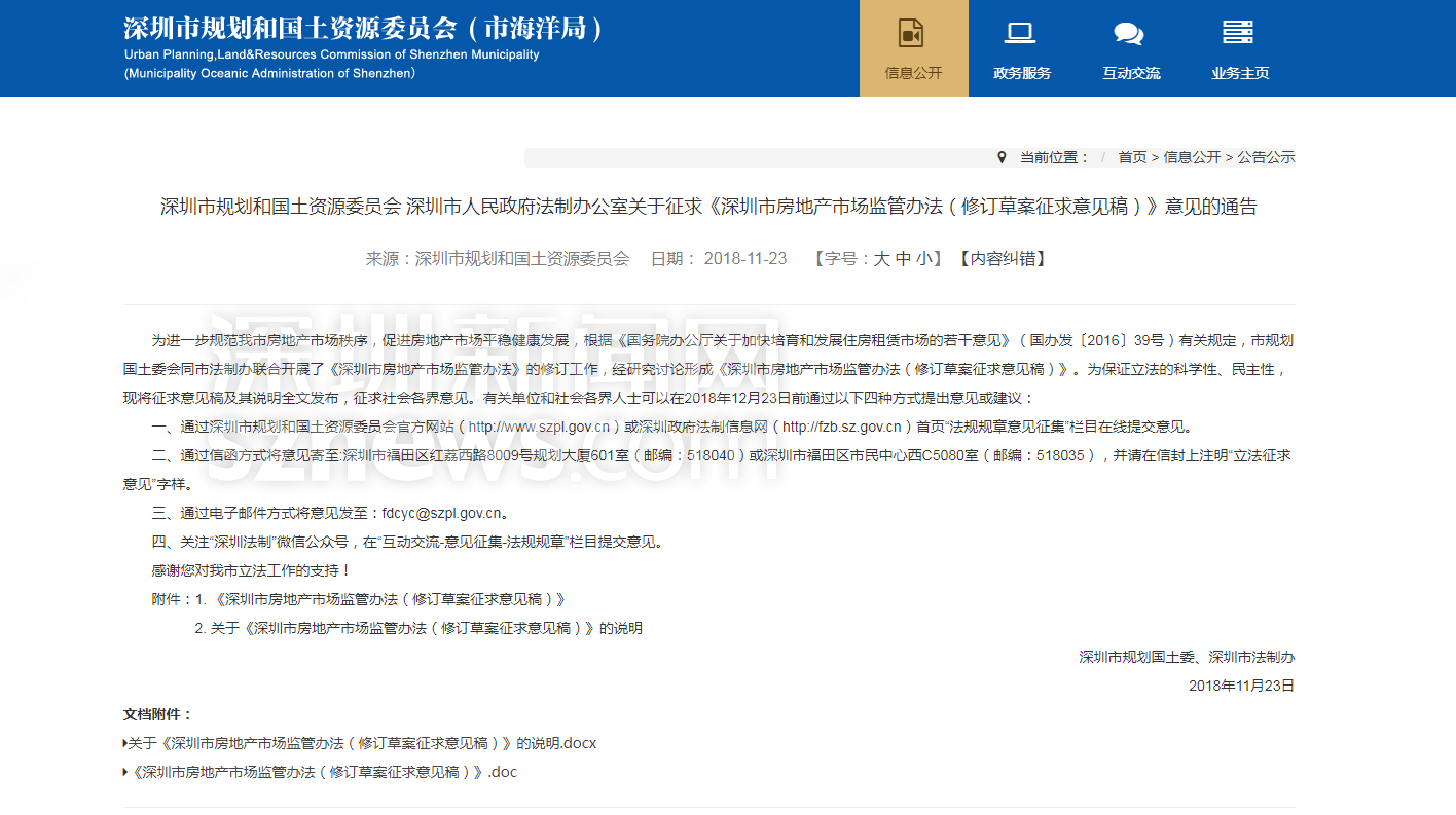 據(jù)了解,深圳市規(guī)土委會同市法制辦聯(lián)合開展了《深圳市房地產(chǎn)市場監(jiān)管辦法》的修訂工作,形成《深圳市房地產(chǎn)市場監(jiān)管辦法(修訂草案征求意見稿)》(以下簡稱《辦法意見稿》)。記者注意到,此次修訂的大背景是落實國家“房住不炒”的目標要求,加上國務(wù)院取消了房地產(chǎn)經(jīng)紀人資格管理制度、深圳市取消了房地產(chǎn)行業(yè)年檢制度而實行年報制度,原監(jiān)管辦法自2010年以來,已實施近8年,相關(guān)規(guī)定已不合時宜,亟需結(jié)合新的形勢和要求進行修訂完善。