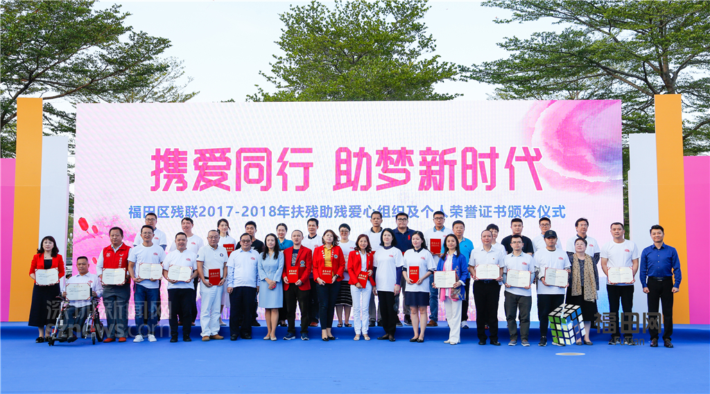 福田區(qū)扶殘愛心組織及個(gè)人與領(lǐng)導(dǎo)嘉賓合影。