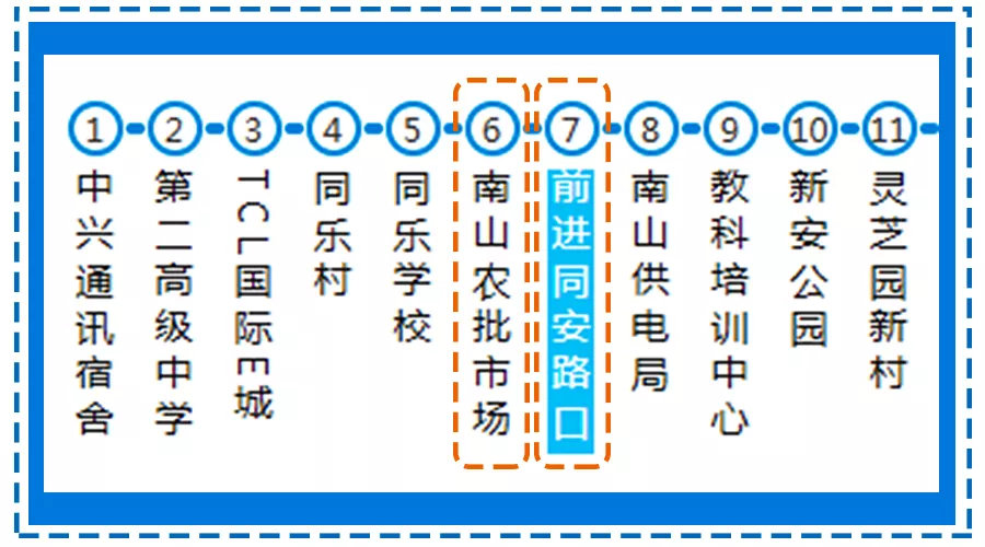 ▲學校附近有兩個公交站臺——前進同安路口站和南山農批市場站。