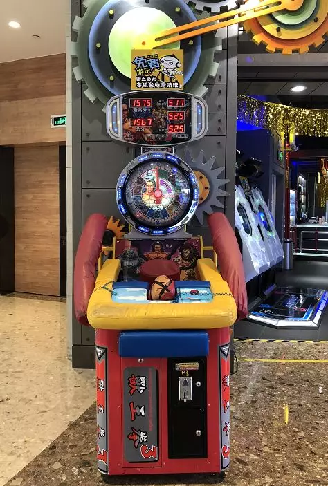 參賽選手戴上拳王手套,對指定設備進行拳擊,拳擊分數(shù)700分即為通關。