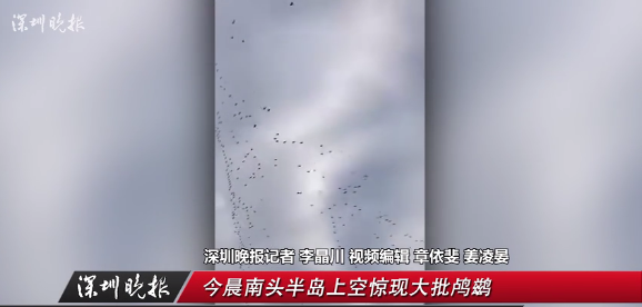 說到鳥啊,13日上午,一群鸕鶿從南頭半島上空飛過