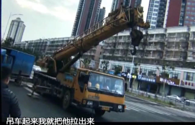 盡管大家都想盡了辦法,但貨車的重量仍然讓被壓的司機(jī)無法脫身。這時,有人看到了一部吊車經(jīng)過,馬上向吊車司機(jī)求救。