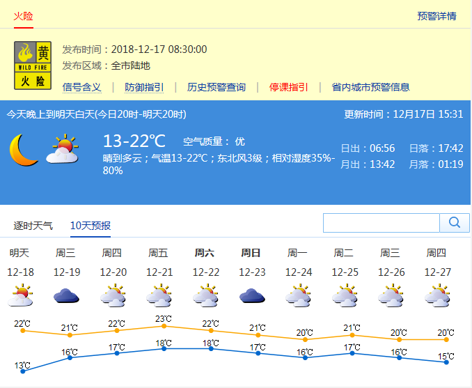 市氣象局發(fā)布未來十天天氣預報(數(shù)據(jù)更新于12月17日15時31分)