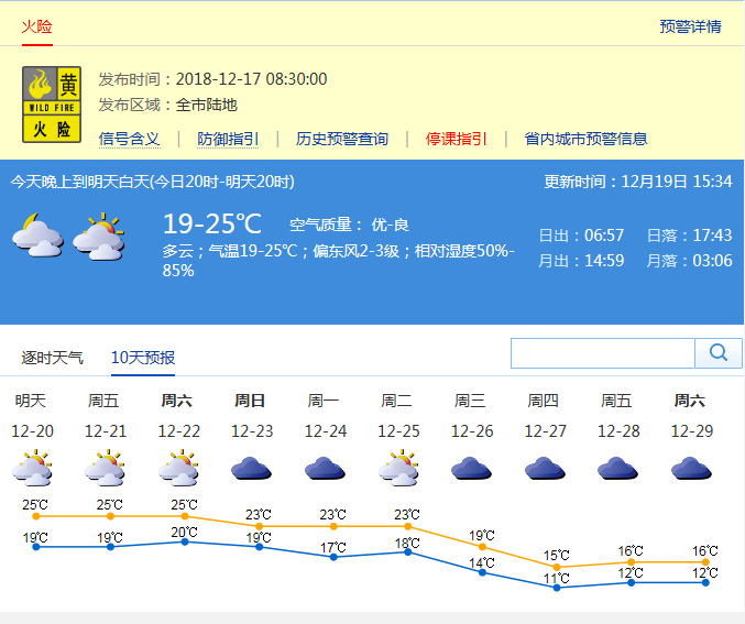 記者從深圳市氣象局了解到,19日深圳市空氣質(zhì)量優(yōu)-良;以多云天氣為主;氣溫在19-25℃;偏東風(fēng)2-3級;相對濕度在50%-85%。