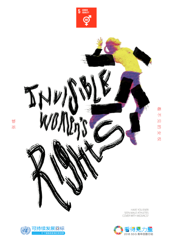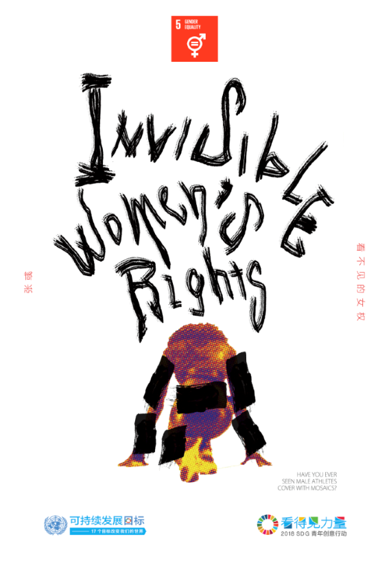 作品解釋 /在一些國家的電視體育轉(zhuǎn)播中,女性的肢體是不能裸露于外界視線之中的??尚Φ氖?,原本展現(xiàn)身姿動作的體育賽事,卻被黑色馬賽克所遮擋,顯得畫面十分尷尬。這就是女性在當(dāng)下的權(quán)利阻礙,試問,男性在體育賽事中也有相同待遇嗎?