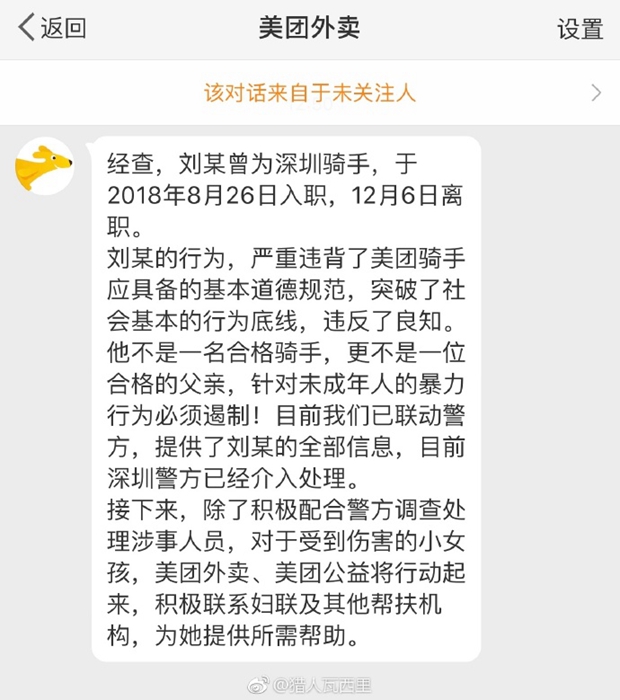 美團(tuán)確認(rèn)毆打8歲女童的男子劉某曾是美團(tuán)騎手,并提供劉某全部信息予警方