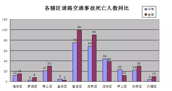 深圳市也將成為國內(nèi)首個(gè)實(shí)現(xiàn)道路交通事故年萬車死亡率低于1的大中型城市,基本達(dá)到世界先進(jìn)城市道路交通安全水平。傳統(tǒng)事故多發(fā)區(qū)事故減少