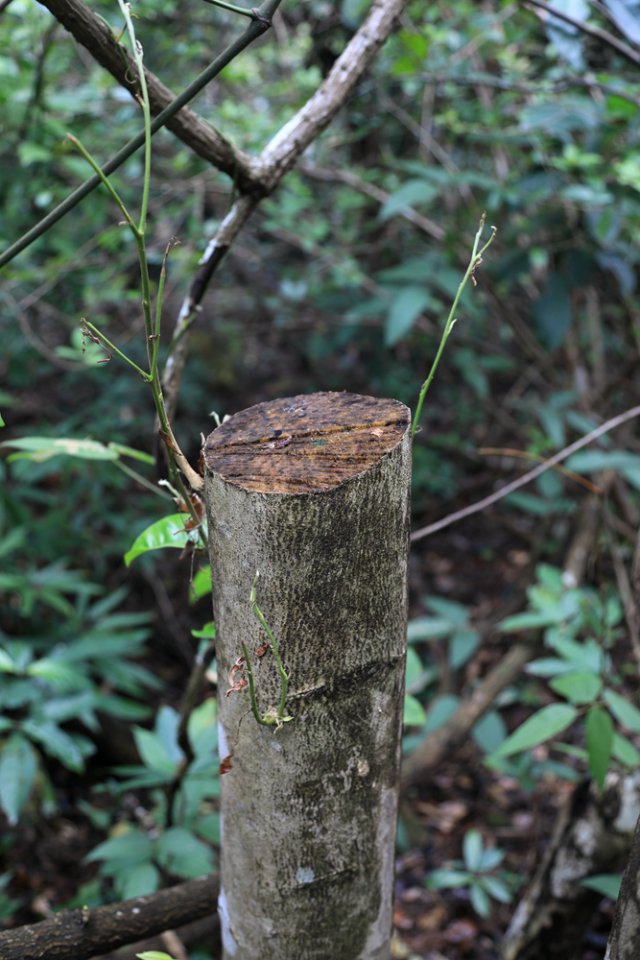 12月24日上午,記者再次來(lái)到首次發(fā)現(xiàn)盜采土沉香的地點(diǎn)。經(jīng)過(guò)近兩個(gè)小時(shí)的搜尋,在東北側(cè)山坡和溪谷中,又接連發(fā)現(xiàn)了6棵被盜伐的疑似野生土沉香。記者隨即將情況向仙湖植物園管理處副主任、植物專家張壽洲博士通報(bào)了情況,張博士告訴記者,管理處會(huì)盡快勘查現(xiàn)場(chǎng),對(duì)被破壞的土沉香進(jìn)行處理。"通常情況下,被鋸斷的土沉香不會(huì)死亡,我們會(huì)根據(jù)實(shí)際情況對(duì)受損的植株采取相應(yīng)的保護(hù)措施。另外,我們會(huì)用水泥、油漆對(duì)土沉香被盜采盜伐的斷面進(jìn)行封閉處理,讓不法分子盜采不到香料。"張博士說(shuō)。