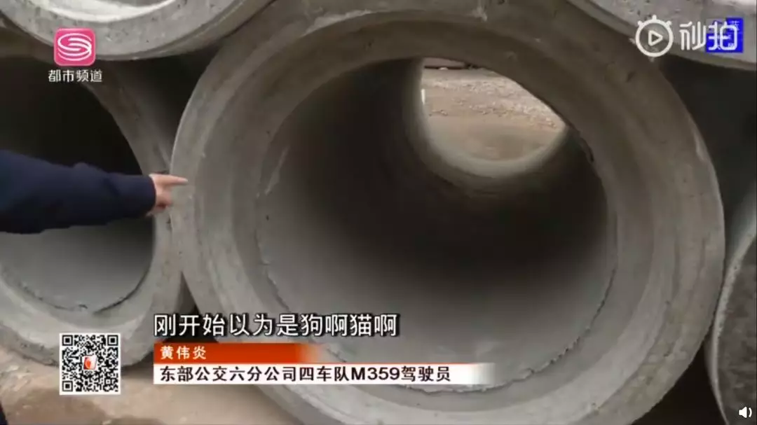12月22日晚上十點(diǎn)多,東部公交六分公司四車隊的公交司機(jī)黃師傅剛剛下班,回家路上經(jīng)過坪山區(qū)金牌路時,聽到擺放在路邊的排污下水管道有聲音便上前查看。