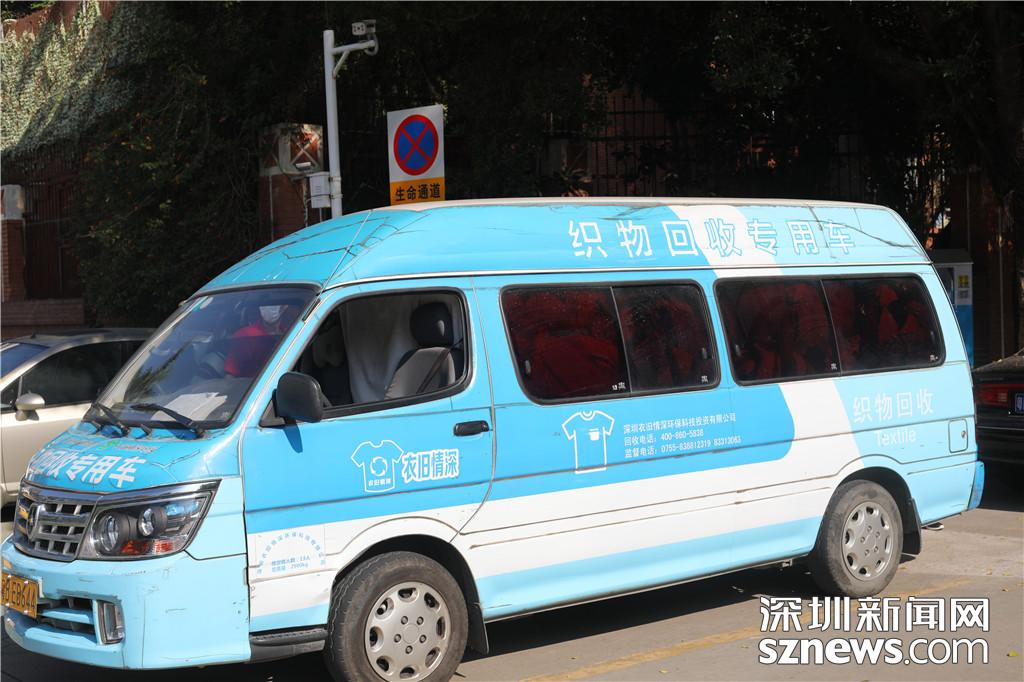 在福田區(qū)梅林一村的近停車場(chǎng)入口處,記者在幾乎要滿的織物回收箱前等待著該公司運(yùn)輸車輛的到來。不久后,一輛噴涂有織物回收專用車字樣的面包車進(jìn)入了停車場(chǎng)。據(jù)介紹,該車輛噴涂為政府統(tǒng)一要求,進(jìn)行廢舊織物回收的作業(yè)的車輛需要有統(tǒng)一的涂裝。