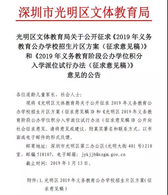 此次征求意見稿截止日期為2019年1月13日,光明區(qū)的家長可在截止日前通過“深圳光明教育”公眾號或光明區(qū)文體教育局郵箱反饋意見和建議。