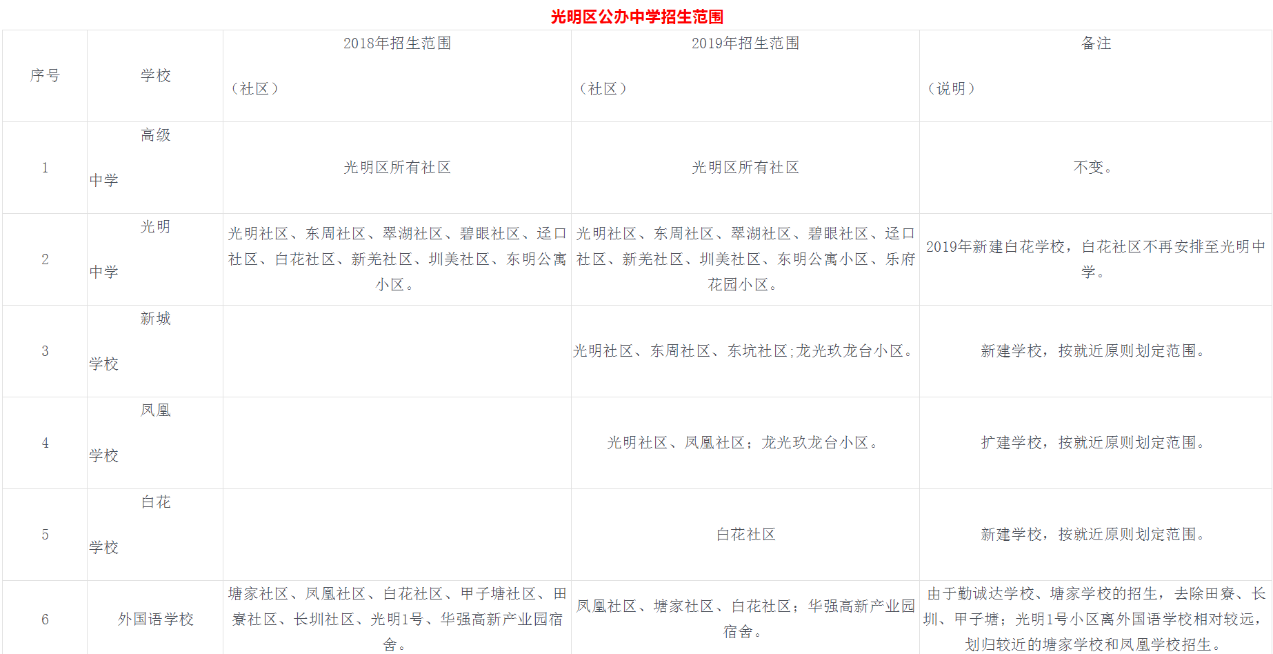 光明區(qū)公布2019年公辦小學、初中招生片區(qū)和學位積分方案啦