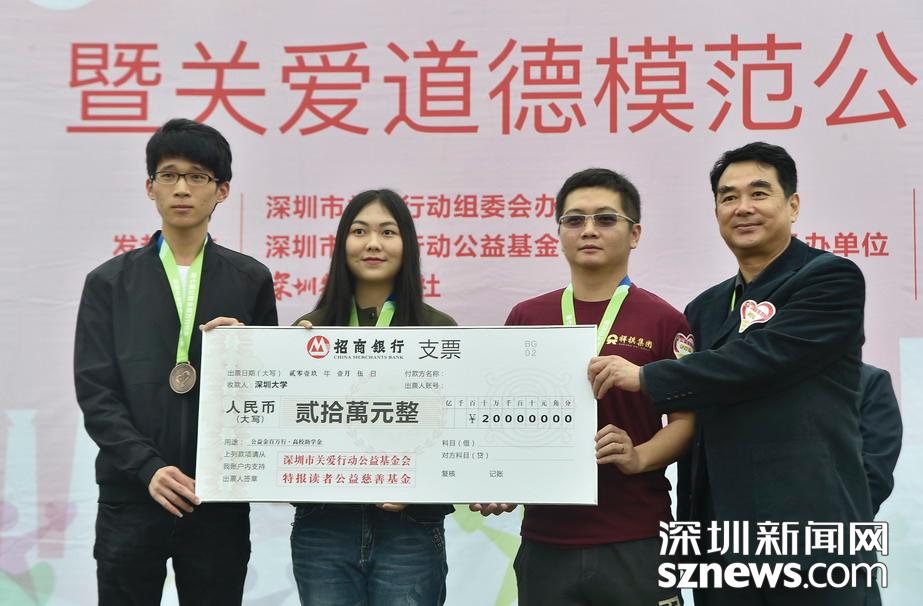 值得一提的是,在活動現(xiàn)場還舉行了“公益金百萬行”助學(xué)金捐贈儀式,為深圳大學(xué)、深圳職業(yè)技術(shù)學(xué)院、深圳信息學(xué)院三所高校各捐贈了20萬元,用于資助這三所學(xué)校的困難學(xué)子。迄今深圳特區(qū)報讀者公益慈善基金已資助1613名貧困大學(xué)生,累計資助金額達409萬元。