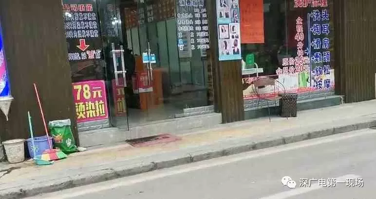 今天記者在現(xiàn)場(chǎng)看到,理發(fā)店門前地上留有被咬女子的血跡,祠堂門口地上及周邊路墩,都有狗被打后留下的血跡。