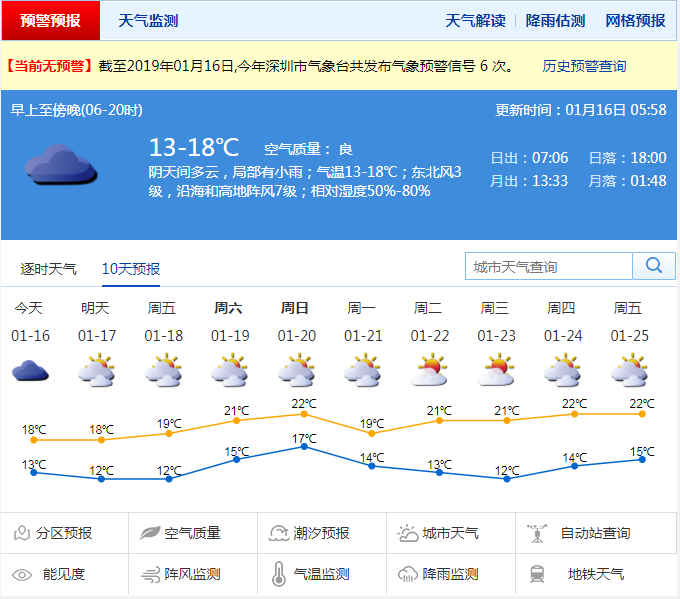 深圳新聞網(wǎng)2019年1月16日訊(記者 陳婕)記者從深圳市氣象局了解到,16日受冷空氣和切變線影響,陰天有分散小雨,天氣顯著轉(zhuǎn)涼,沿海和高地陣風(fēng)6-7級;17-18日多云,可見陽光,早晚較冷;19-20日受偏東氣流影響,陰天間多云,間中有分散小雨。21日陰天有小雨轉(zhuǎn)多云,氣溫下降;22日起天氣晴朗干燥。