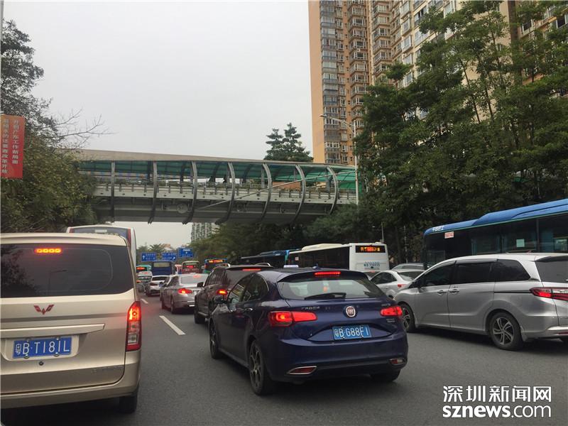 寶安大道多處施工,導致車輛擁堵緩行