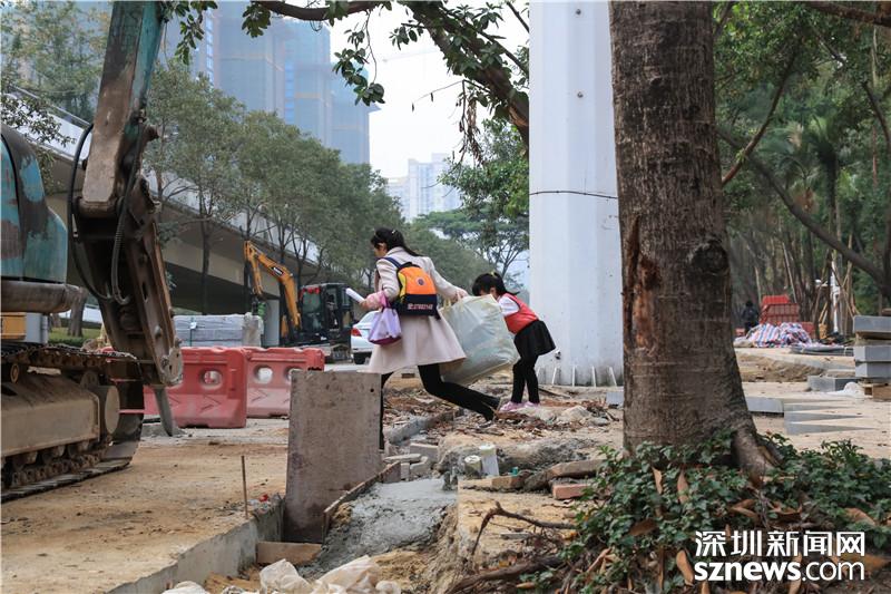 由于寶安大道相關路段施工,不少市民戴口罩出行