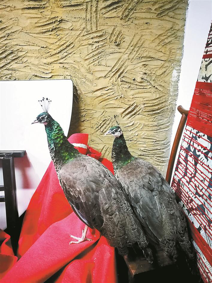 1月16日,市民蔣先生的公司飛來(lái)了兩只雌性藍(lán)孔雀
