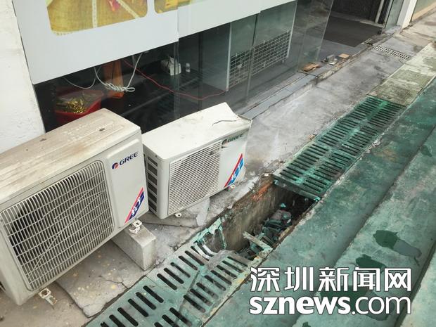 餐飲店老板告訴記者,當(dāng)時肇事車輛逆行直接沖下8級臺階,巨大的沖擊力將店門前的地板撞得粉碎,門口的空調(diào)機箱也受損嚴(yán)重。