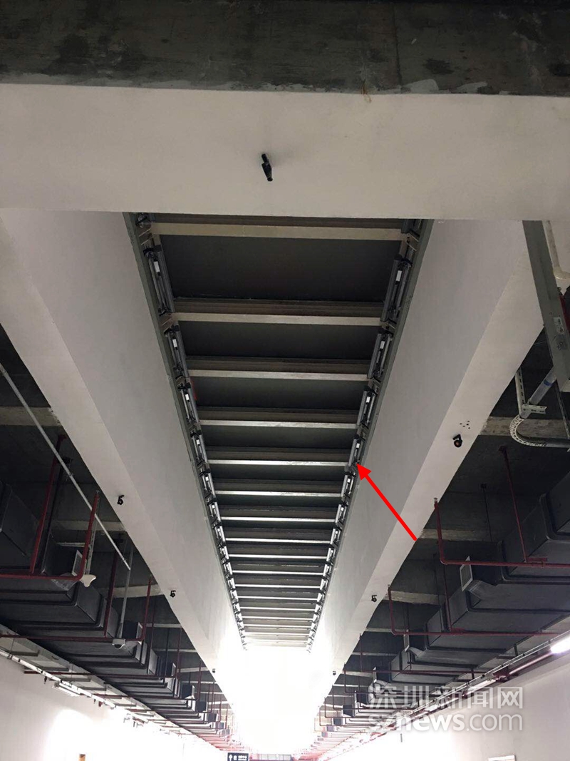 激光位移計(jì)安裝在地下車庫(kù)的頂端(紅色箭頭處),記錄位移數(shù)據(jù)(王啟文供圖)