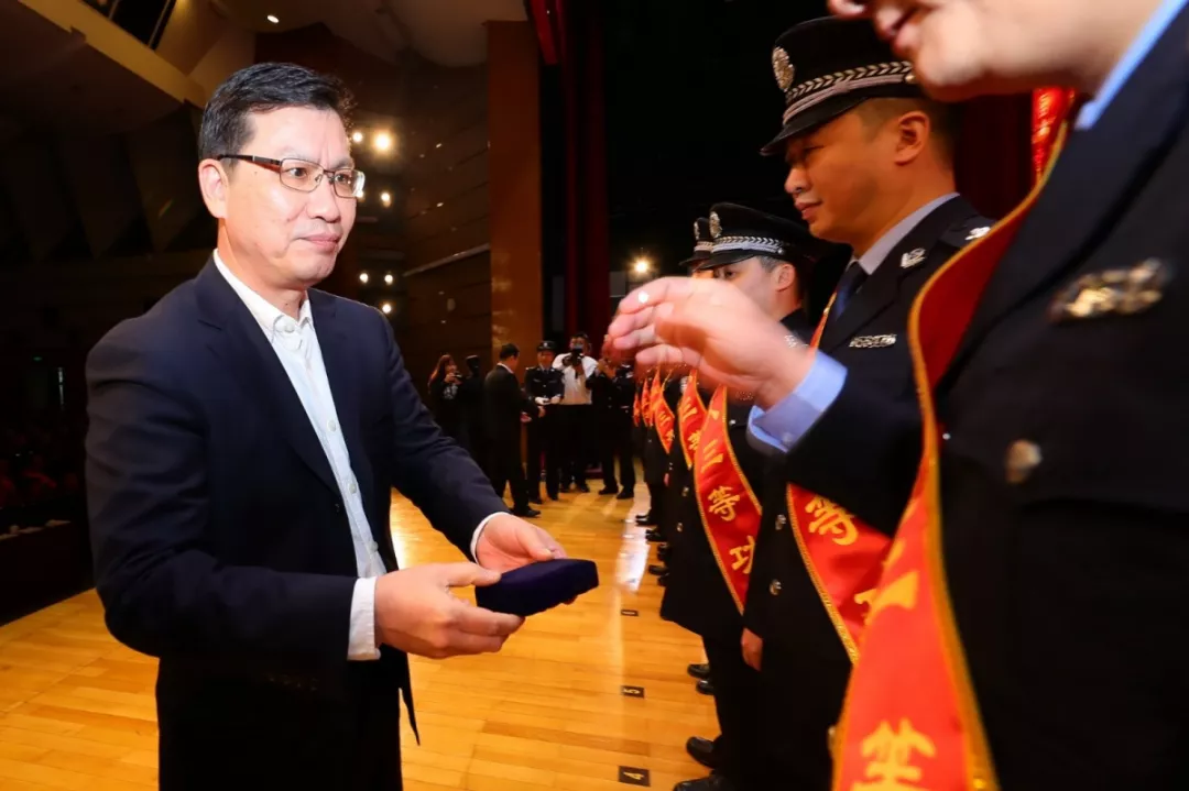 市公安局黨委副書記、常務(wù)副局長周兆翔為個人一等功頒獎