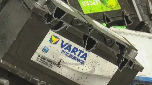 1月16日下午,記者跟隨南山區(qū)環(huán)保水務(wù)執(zhí)法人員,到現(xiàn)場查處,一處近500平米廢品回收場站內(nèi),廢舊電池堆積如山,之前3名工人拿著類似砍刀的工具,用簡單粗爆方法,對電池進(jìn)行拆解。