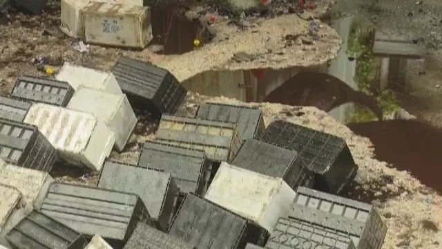 深廣電直播深圳2019年1月29日訊 前不久我們接到報料,在南山區(qū)西麗壯輝物流園內(nèi)發(fā)現(xiàn)一處大量非法回收處理廢舊電池的窩點(diǎn),數(shù)以噸計(jì)的廢舊電池液體,在露天環(huán)境下直接排向周邊環(huán)境,而且窩點(diǎn)老板、工人等違法人員現(xiàn)場全部聞風(fēng)逃跑。