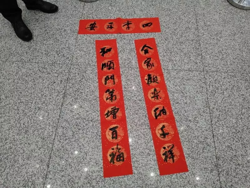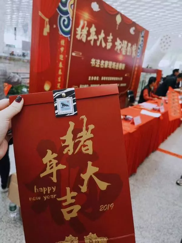 現(xiàn)場寫春聯(lián)的活動(dòng)時(shí)很心動(dòng),