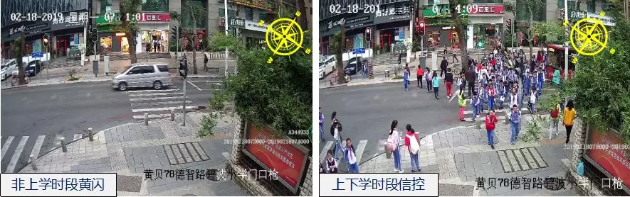 為了保障學(xué)生安全過街,深圳交警恢復(fù)黃貝/德智路口上下學(xué)時(shí)段信號燈管控模式,非上下學(xué)時(shí)段啟用黃閃控制模式。