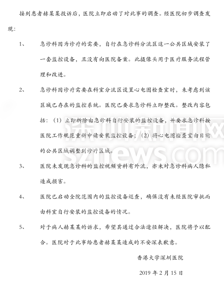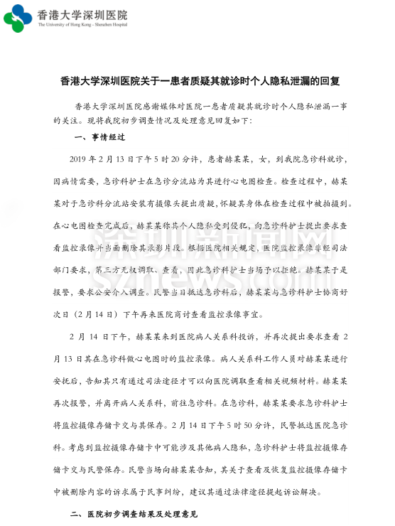 接到投訴后的港大深圳醫(yī)院,作出了以下回應(yīng):