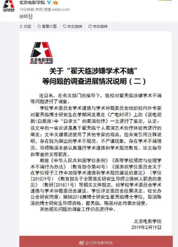 繼翟天臨退出北大博士后站之后,北電也于19號撤銷其博士學(xué)位了