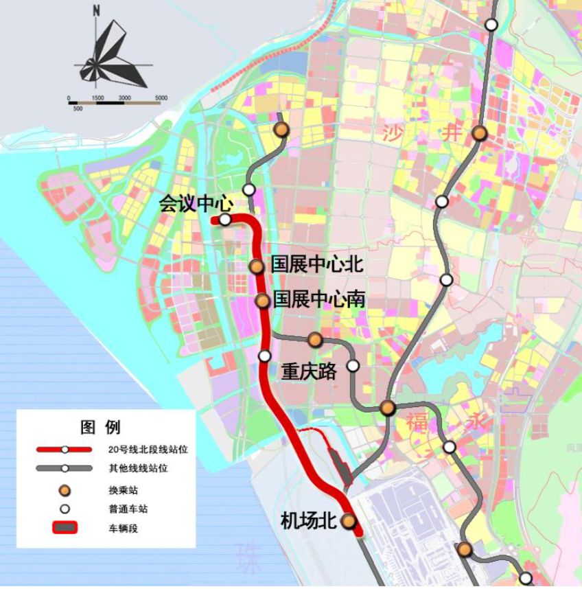 20號(hào)線北段主要服務(wù)國(guó)際會(huì)展中心、國(guó)際會(huì)議中心、科技館等臨灣片區(qū)大型公共設(shè)施,并為其提供與寶安機(jī)場(chǎng) T4航站樓聯(lián)系。