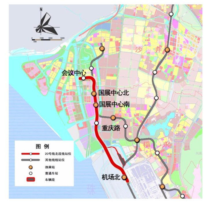 20號線北段主要服務(wù)國際會展中心、國際會議中心、科技館等臨灣片區(qū)大型公共設(shè)施,并為其提供與寶安機(jī)場 T4航站樓聯(lián)系。