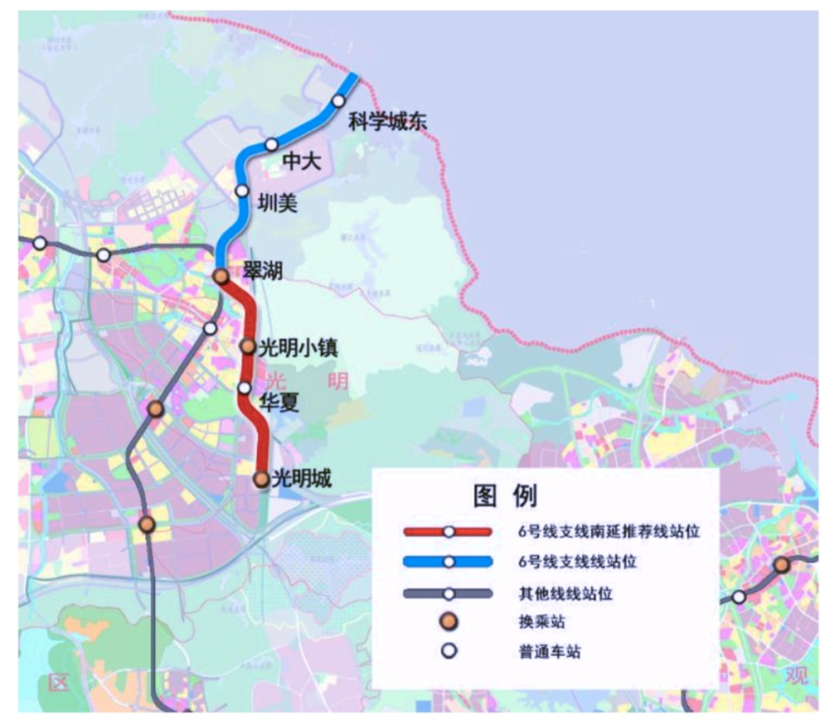 6號線支線南延連接光明中心區(qū)與交通樞紐光明新城站片區(qū),帶動鳳凰新城、光明小鎮(zhèn)片區(qū)的發(fā)展,支持光明城樞紐功能的形成,可提升片區(qū)對黃江片區(qū)、大學(xué)城的輻射作用。未來與6號線支線一起,銜接?xùn)|莞1號線,支持深莞一體化發(fā)展。