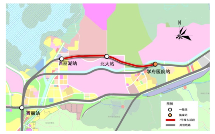7號線東延段進(jìn)一步加強(qiáng)特區(qū)南半環(huán)的居住和就業(yè)片區(qū)的聯(lián)系,與5號線、27號線共同承擔(dān)西麗大學(xué)城地區(qū)交通服務(wù)功能,尤其是為未來深圳大學(xué)附屬醫(yī)院的醫(yī)患人員出行提供便利。