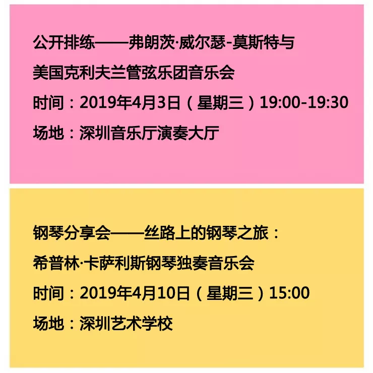 2019深圳“一帶一路”國(guó)際音樂(lè)季秉承文化惠民的原則,高品質(zhì)演出的門(mén)票價(jià)格平易近人,最低票價(jià)至100元/張。更有超值優(yōu)惠的學(xué)生票,部分演出免費(fèi)免票。
