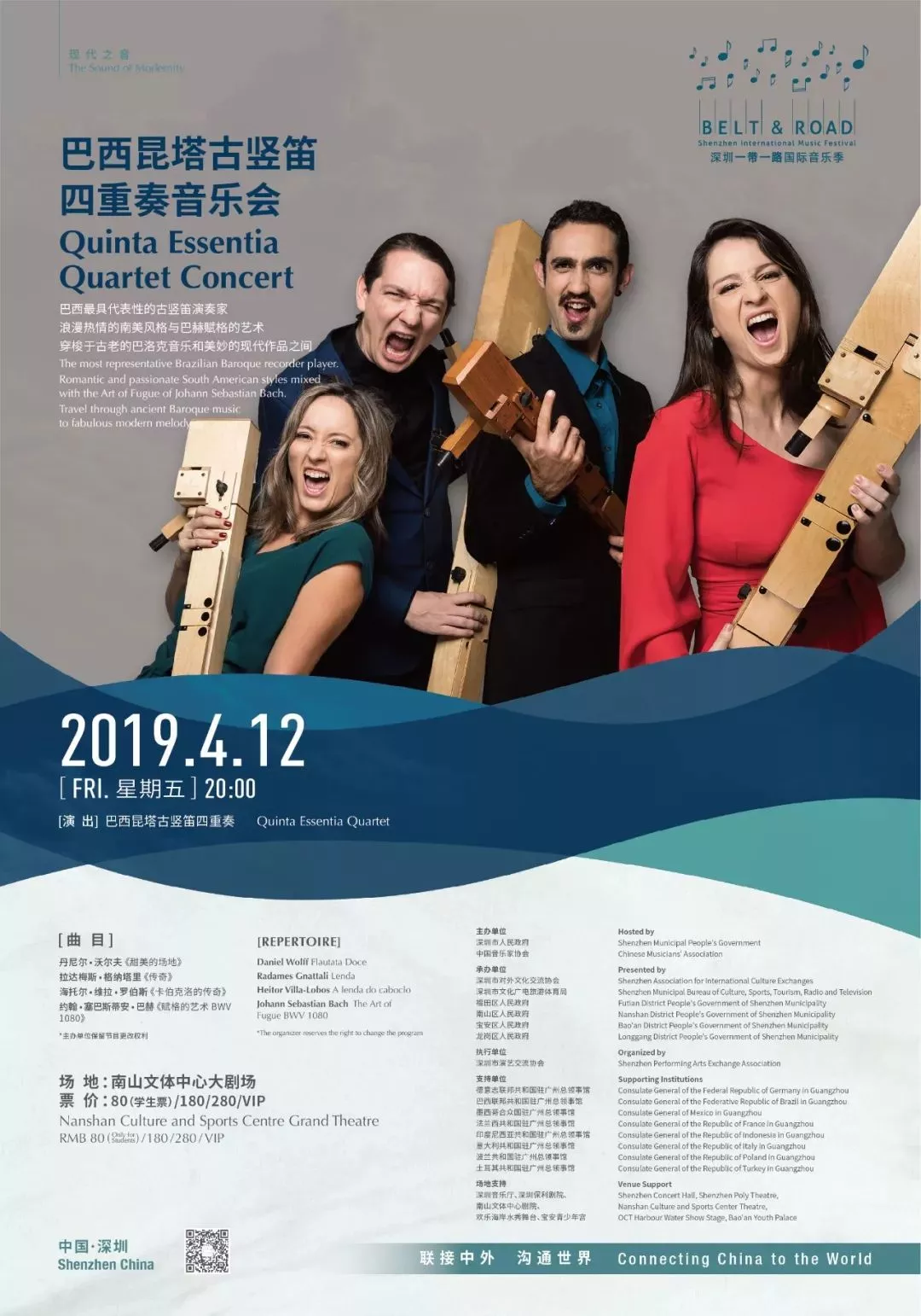 來(lái)自巴西的昆塔古豎笛四重奏,專程獻(xiàn)上一場(chǎng)融浪漫熱情的南美現(xiàn)代風(fēng)格、巴西民族風(fēng)與巴洛克相結(jié)合的精彩演出。